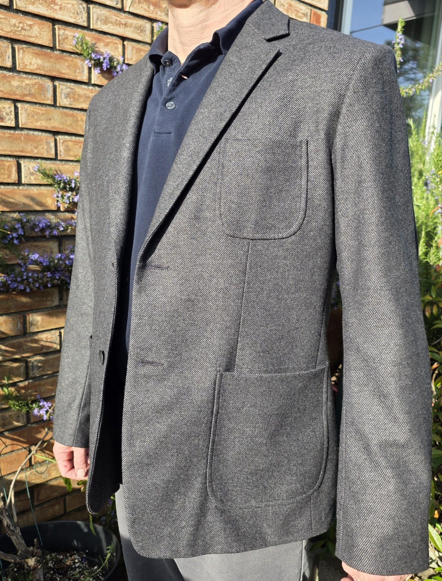 Rag and Bone New York "Patrick" model wool-blend blazer/sport jacket. Men's size 44 Regular (XL). New condition, with tags and extra buttons, unmodified. Charcoal Grey color, fully lined. Ready to wear. See pictures(fyi jacket is a size too big for the "model" in pics). Made in USA. Retailed for $595++. Will include a wood hanger.