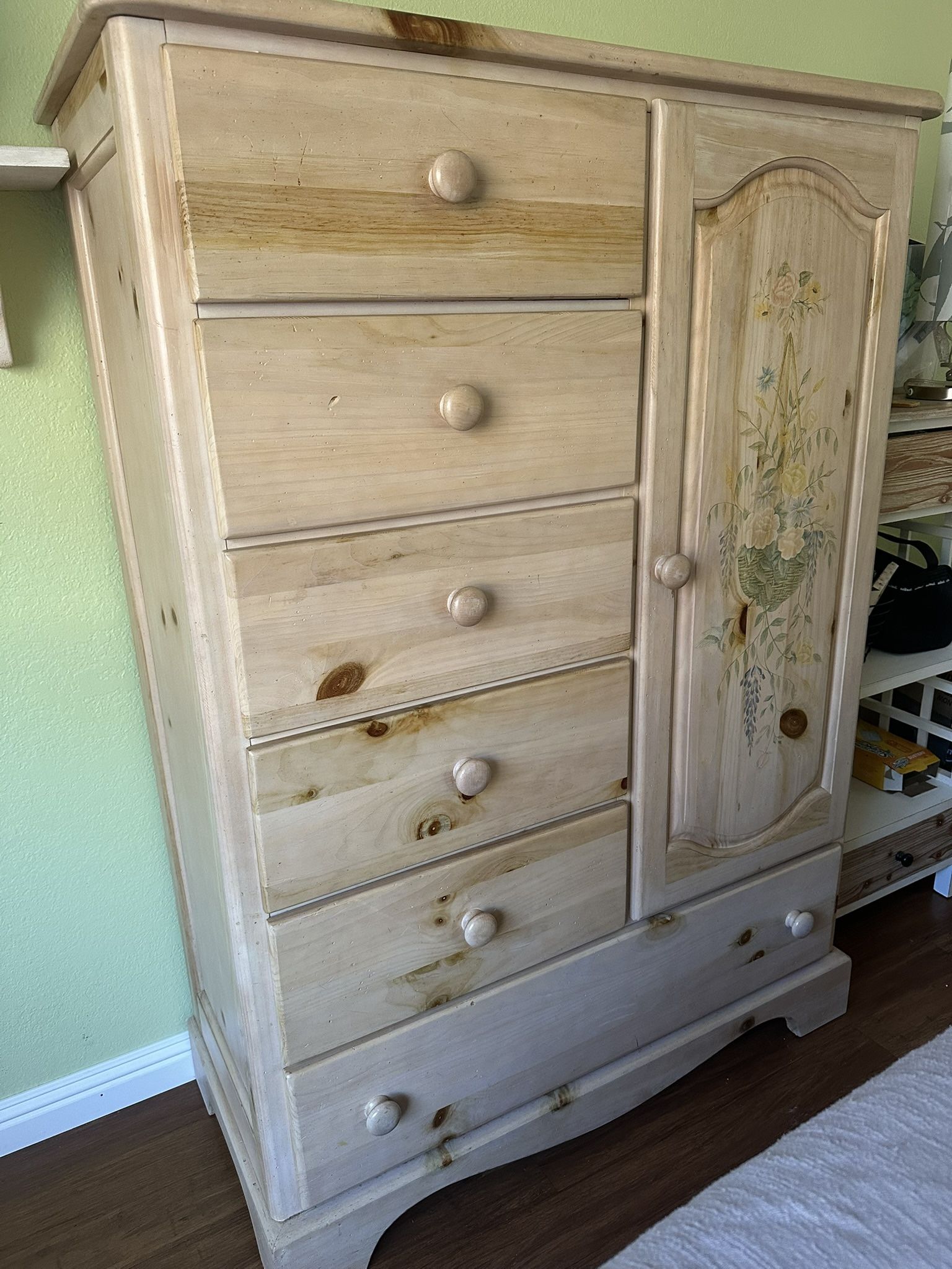 Includes desk + chair, armoire, and bookshelf. Solid wood - great quality.