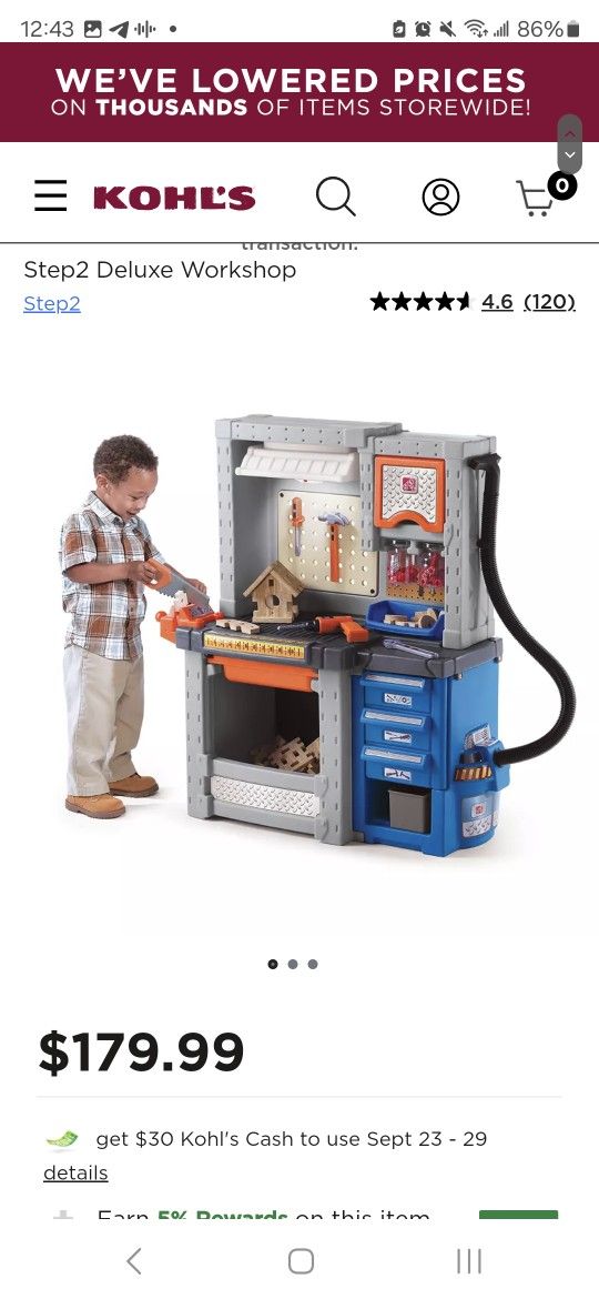 Cleaned and sanitized. From a pet and smoke free home. This workshop by Step2 will allow little ones to pretend they're a carpenter or designer. Children can pretend to be a handyman or handywomen as they use their toy tools. This tool workshop for kids is large with plenty of space and accessories for multi-child play. Made in USA of US and imported parts. • Plastic • TODDLER WORKBENCH: The Step2 Deluxe Toy Tool Bench is the ultimate toy tool workshop for a child’s playroom. Kiddos will make believe they're a carpenter as they use their toy tool . • Assembled Dimensions: 40.75" H x 34" W x 15" D • LARGE WORKSHOP: Children can pretend to build and fix projects using their toy tools. This girls and boys tool bench workshop has space for multi-child play. The tool bench for kids work surface includes screw holes, recesses for nuts, and screw storage. • INTERACTIVE FEATURES: The toddler tool bench provides interactive fun, a shop vacuum that teaches the importance of clean-up. The tool bench features an electronic drill and overhead shop light. • SKILL-BUILDING FUN: Provide hours of fun for kids with this play tool bench. The kids playset helps kids develop motor skills, role-playing, language & social skills, & critical thinking. • EASY STORAGE: When playtime is over, use the tool chest cabinet, sliding drawer, parts bin, and hanging jars to help store the 50 included play tools accessories to keep this kids tool set neat. Plus, it’s low maintenance – just wipe down as needed.