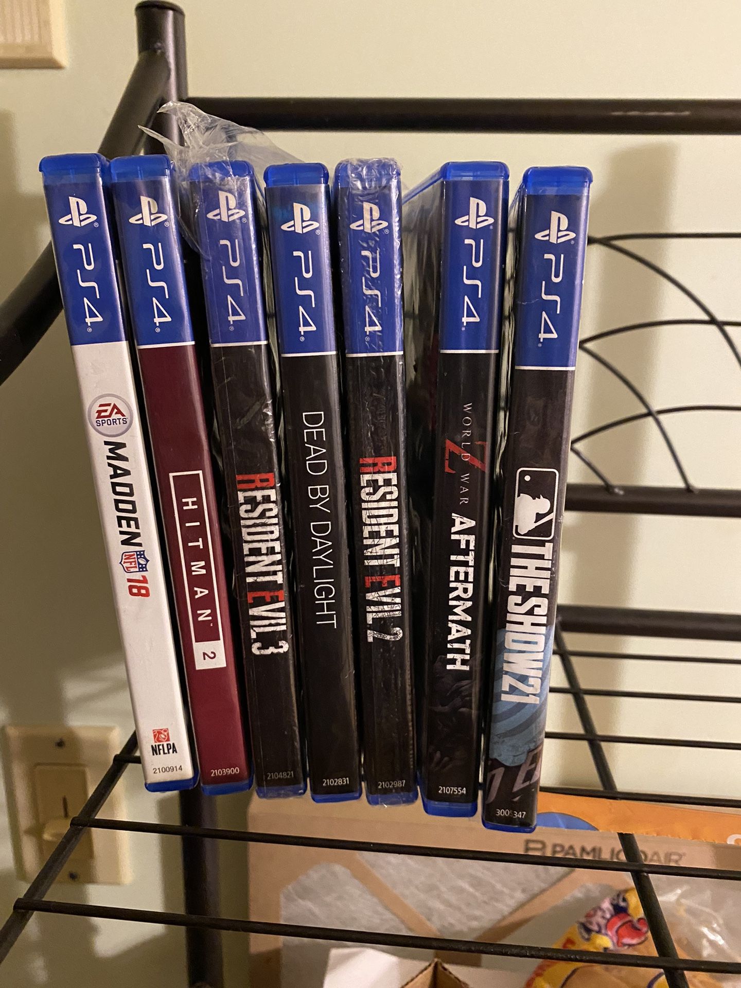 PS4 500 GB to brand new games  which are resident evil two and three in the rest of the games are in great shape.  Also comes with a Samsung curved monitor gaming TV. And I also have a nighthawk router and a hyper X gaming keyboard, that lights up  those are options if you want them but will be extra. Thanks 450 OBO