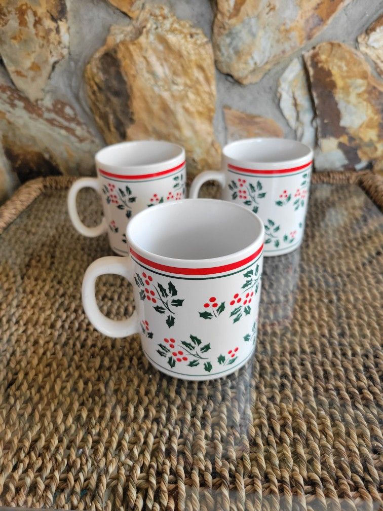 Vintage Set Of Three Christmas White Mugs With Green And Red Holly $10.00 Set of 3 Scroll down ad and click on Seller Profile for additional listings.
