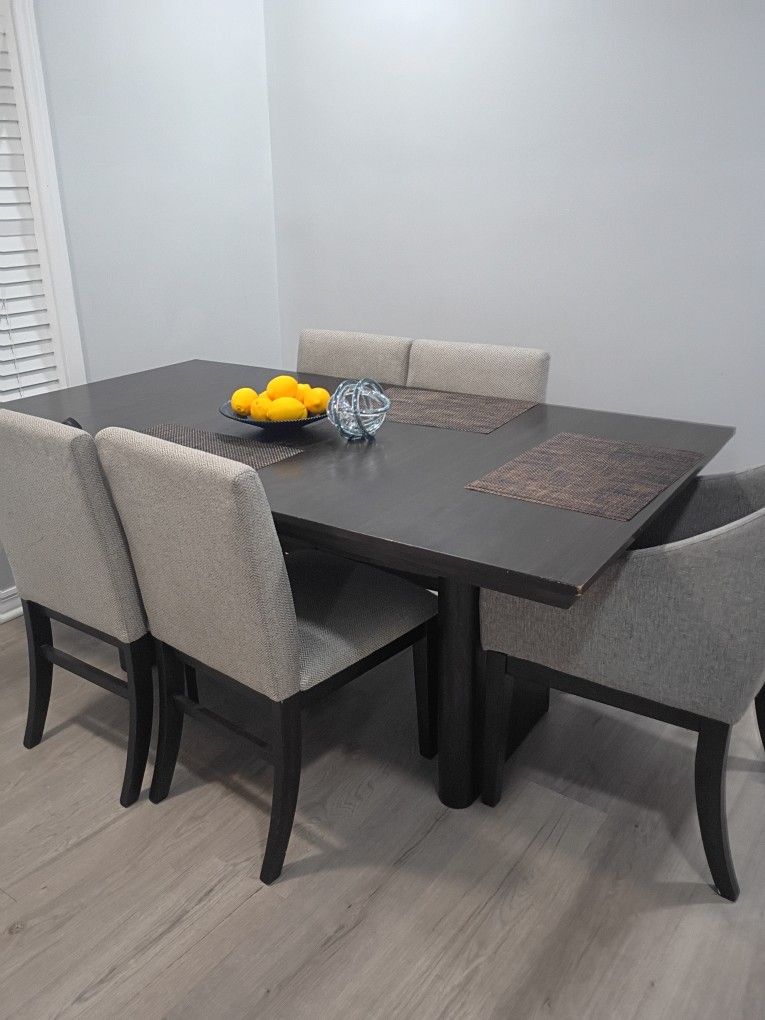 Dark beautiful dinning table with Five Chairs.