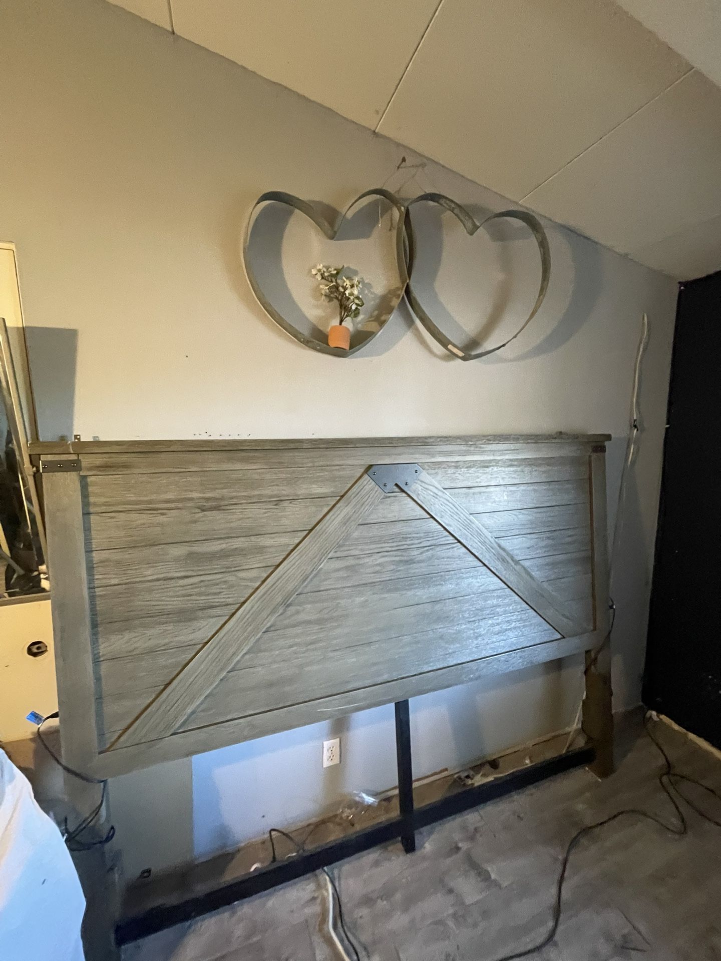 Barn wood finish excellent condition usb & outlets on 2 sides.