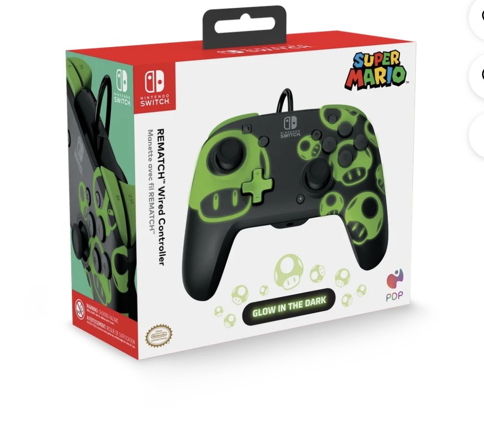 PDP Gaming Rematch Wired Controller for Nintendo Switch - 1Up Glow In The Dark