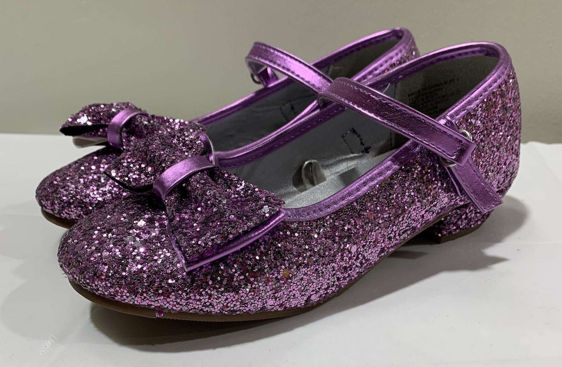 Lily & Dan girls size 1 purple shimmery glitter Mary Jane dress shoes with Velcro straps and accented with bows on the toes - perfect for Easter or w