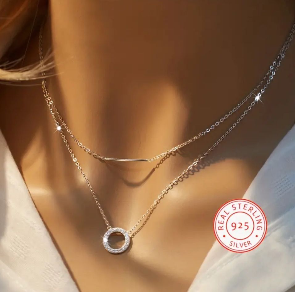 Double Layer 925 Sterling Silver Hypoallergenic Necklace