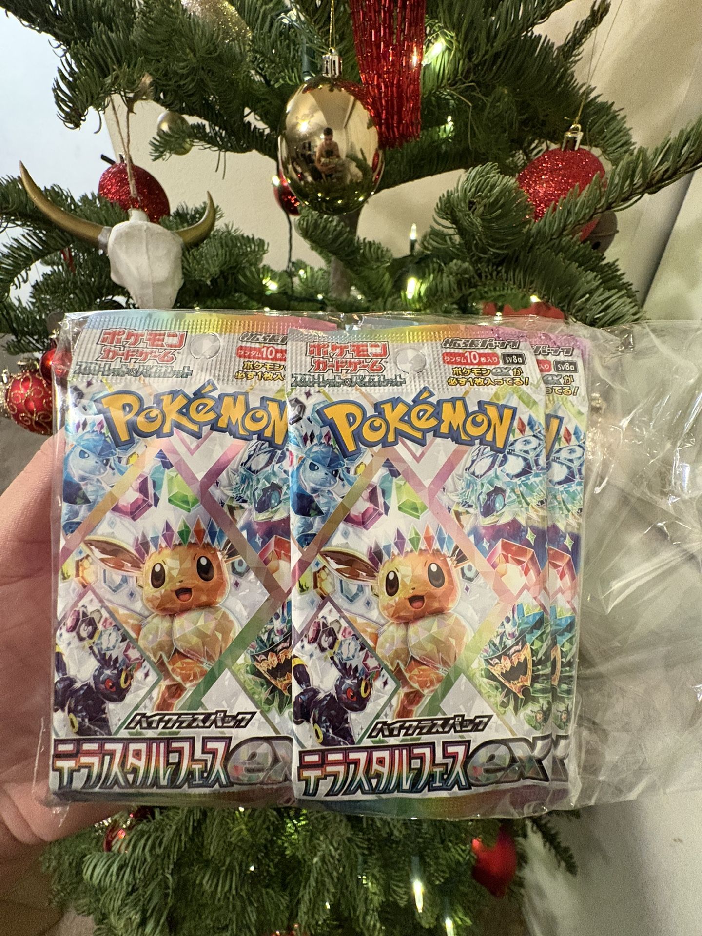 Each JapaneseTerastal Fest ex Booster Box contains 20 booster packs containing 10 random cards each. Can be sold by bundles of 5 packs minimum Take all 20 packs (2 booster boxes for) $170