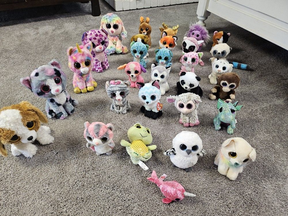 24 standard size, 5 medium sized TY beanie boos. Gentley used, some still have tags on them