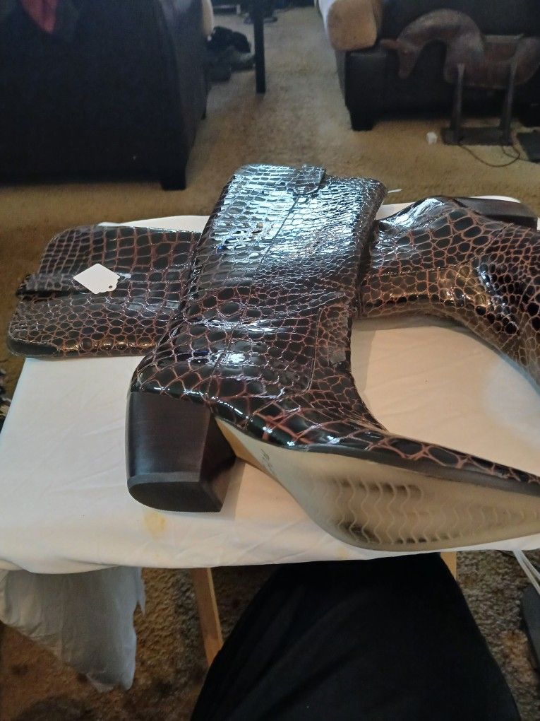 Size 7.5 Ladies EMBOSSED LEATHER UPPER BOOT. MATISSE.MADE IN BRAZIL