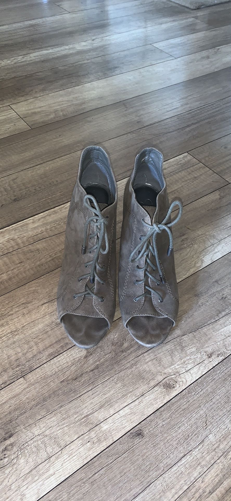 Jessica Simpson Olive Green wedge booties! Open toe with lace up front Excellent condition Size 8.5