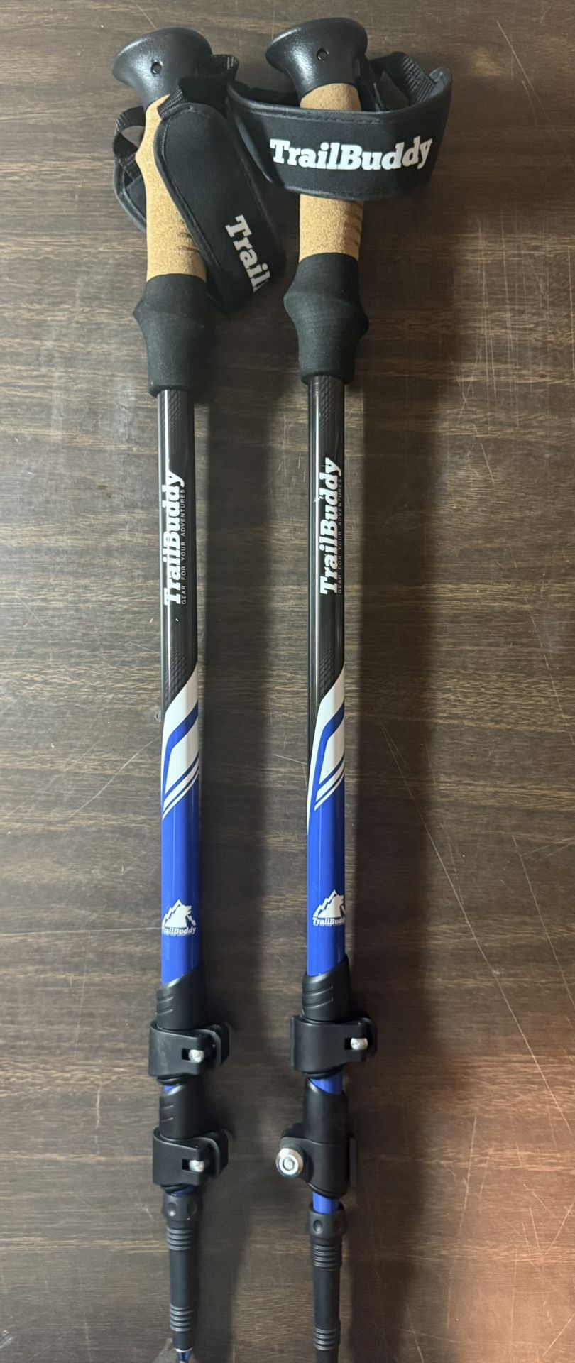 New Set of Trail Buddy Collapsible Trekking Poles 105-135CM 54" Blue Black Cork
