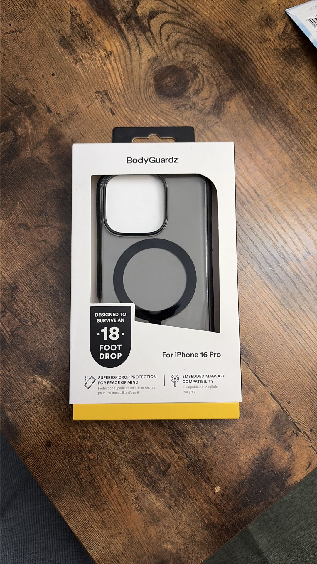 Brand new BodyGuardz phone case designed for iPhone 16 Pro. Features built-in MagSafe compatibility and strong drop protection rated for up to 18 feet. Sleek black/clear design that protects your phone without adding bulk. Perfect if you want durable protection while keeping a clean look. Condition: New in boxBrand: BodyGuardzCompatibility: iPhone 16 ProFeatures:• 18 ft drop protection• MagSafe compatible• Slim design• Shock absorbing material