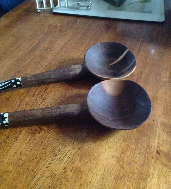 Handmade Wooden Spoon and Fork Salad Set with Bone Handle Inlays