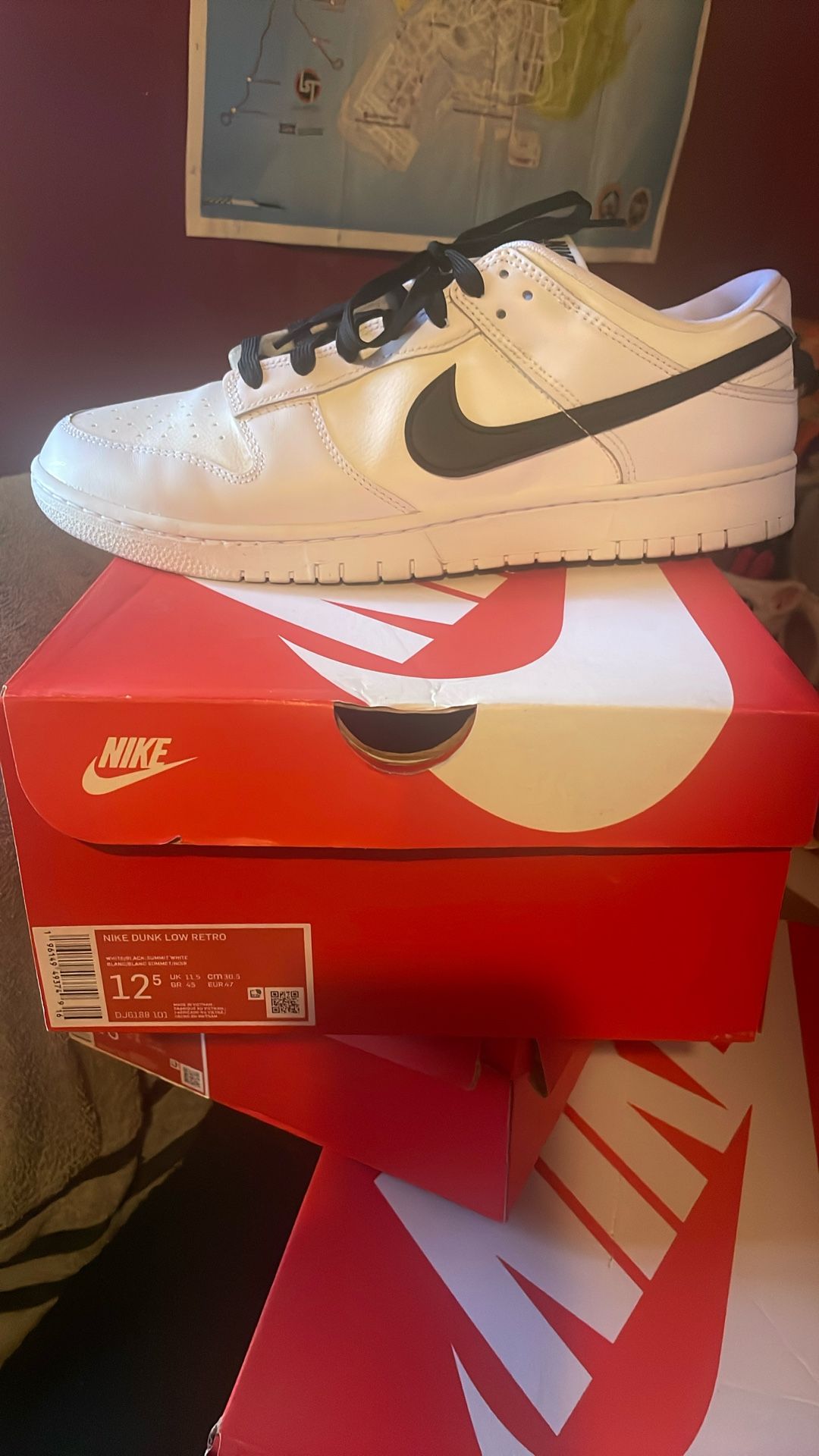 Hi I have a pair of Nike Dunks 12.5 Men Worn 1x Original Box Open to trades or just cash