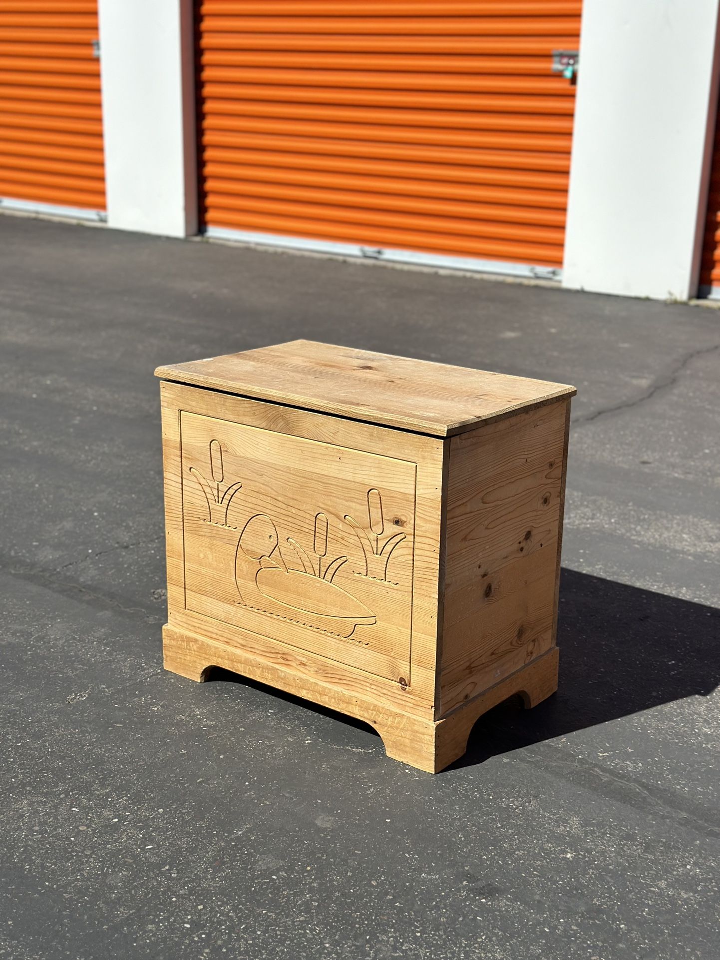 Pick up in Tracy Ca Height-23 inches Length-25 inches Deep-15.5 inches Note- the lid opens all the back (does not stay in place if you want to leave open) Can provide additional pictures upon request