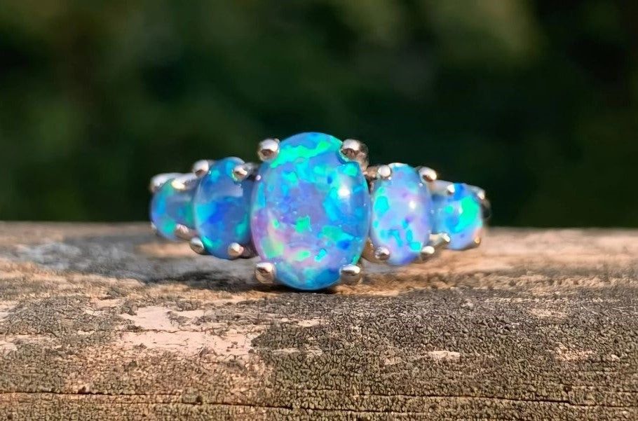 Size: 5 Details: - Condition: New - Metal: Alloy - Band Color: Silver - Stone: Created - Stone Color: Blue Fire Opal - Included: 1 x Ring