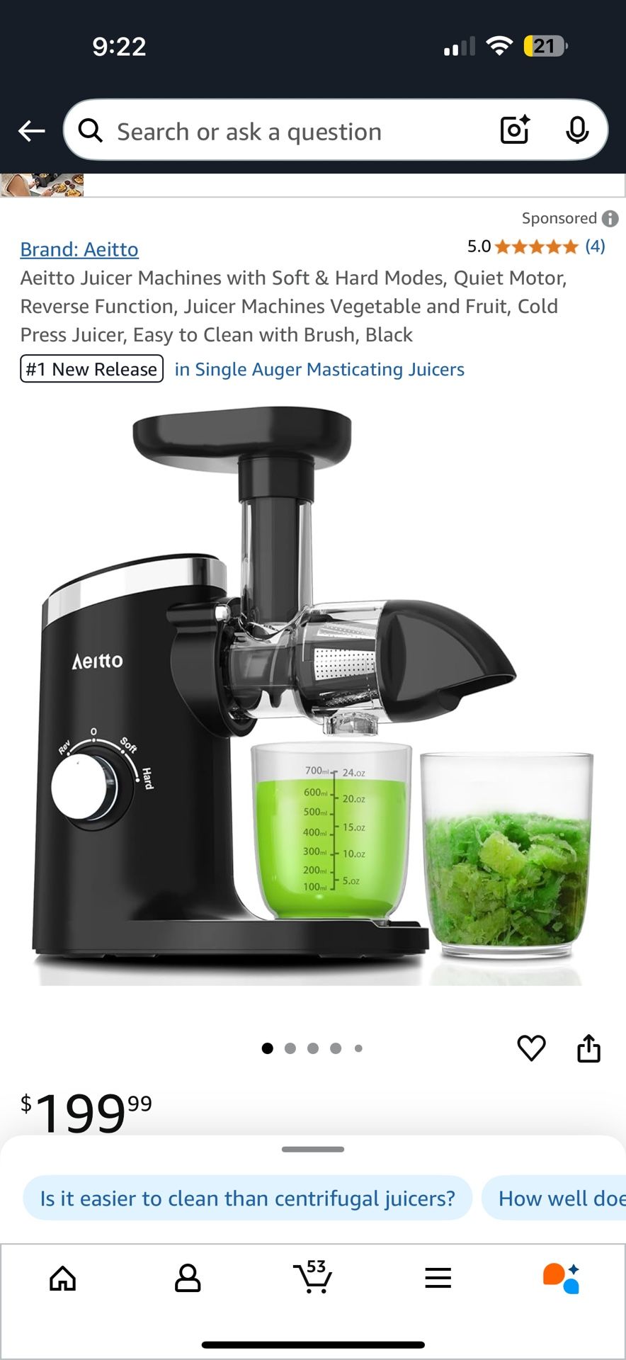 Brand new Aeitto Juicer Machine with Soft & Hard Modes, Quiet Motor, Reverse Function, Juicer Machines Vegetable and Fruit, Cold Press Juicer, Easy to Clean with Brush, Black Comes with all original parts new