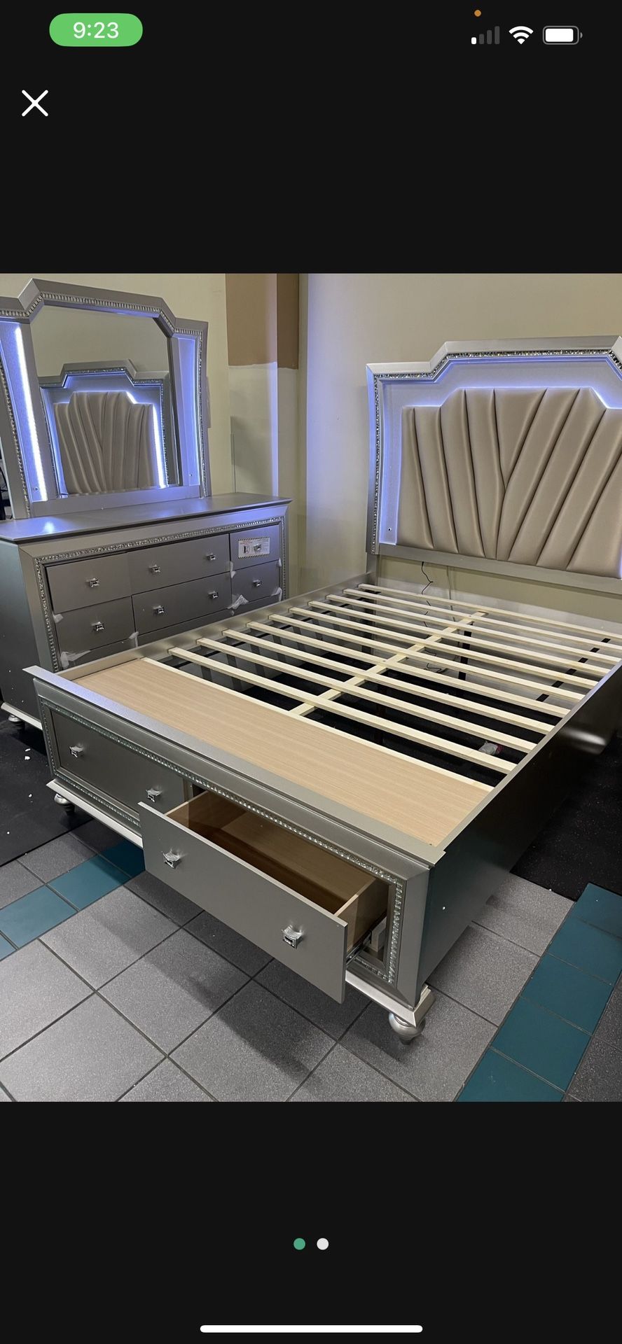 Queen Bed Room Set( Includes Queen Bed Frame, Dresser, Mirror, 1 Night Stand) ON SALE