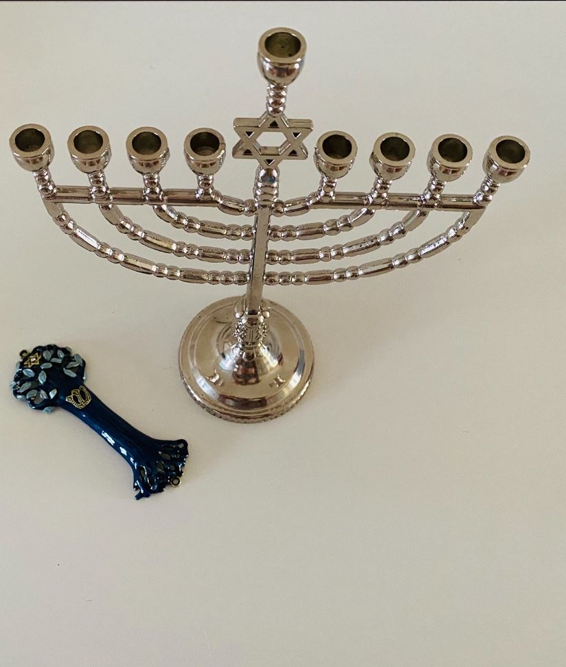 Beautiful brand new Jewish home décor bundle featuring a Star of David Mezuzah and a Rite Lite Hanukkah Menorah. Perfect for blessings, gifting, or enhancing your holiday traditions. ✡️🕯️ Includes: ✡️ Star of David Mezuzah Case • Brand new • Handcrafted brass, hand-enameled • Fits 3” scroll (scroll NOT included) • Indoor/outdoor use • Size: 4” H × 1.5” W 🕯️ Rite Lite Hanukkah Menorah • Brand new • Silvertone finish, die-cast construction • Perfect for your Hanukkah candles • Size: 6.5” L × 2.5” W × 8.5” H • Material: Aluminum A thoughtful and meaningful bundle for home blessings or holiday gifting. ✨ Check out my other Hanukkah & holiday listings! 🕎🎁