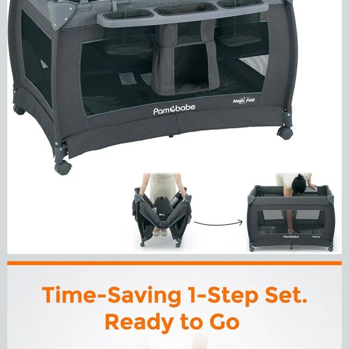 Brand new never opened pamo babe playpen/portable crib with changing table, bassinet, and storage. Bought for $230 on amazon asking 100 obo
