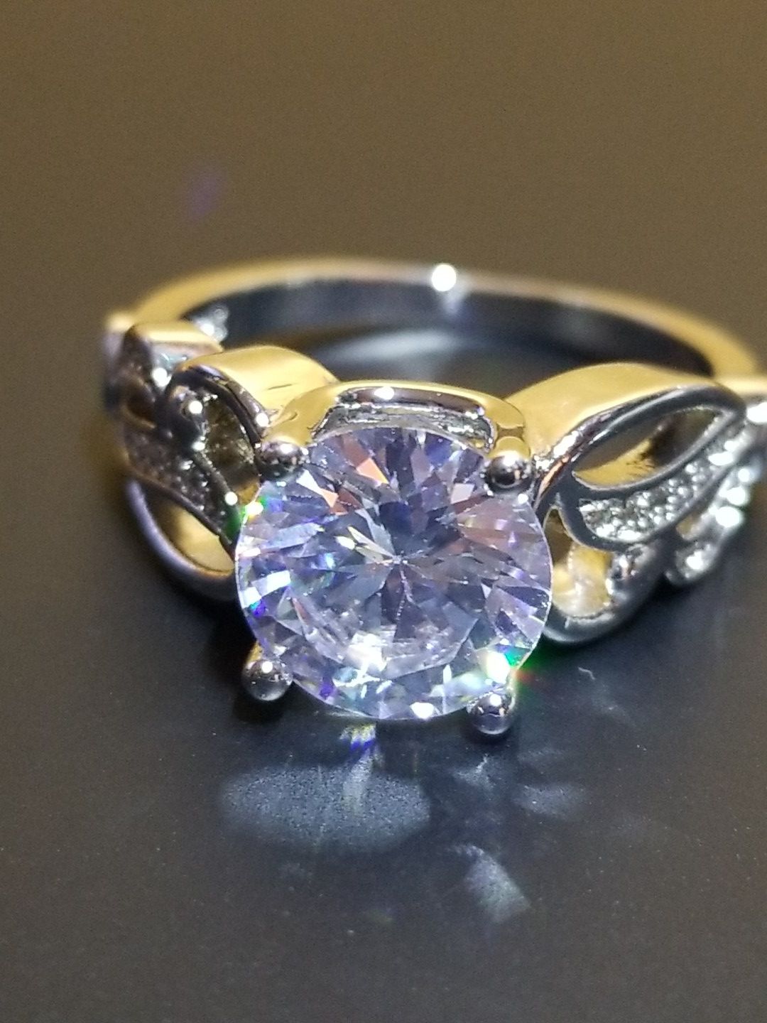 2.89 CT round cut Diamond simulated white gold over silver engagement promises ring size 7.0