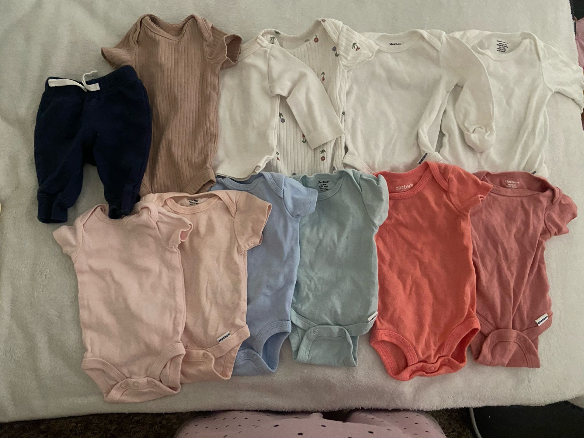$1 each for the bodysuits and $3 for each of the dresses and sets. In great condition, some of the stuff was washed and never worn