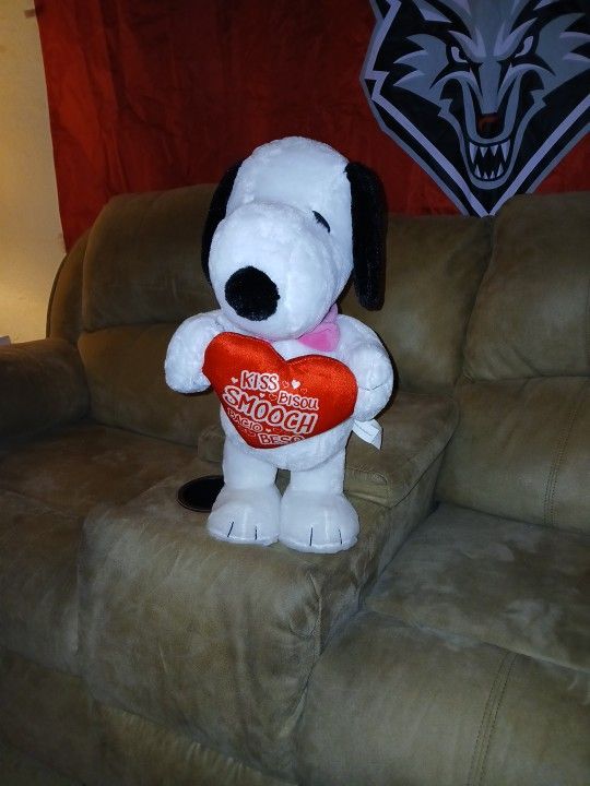 Valentines Snoopy doll. Gem Snoopy Valentines Greeter Plush. Stands by itself.