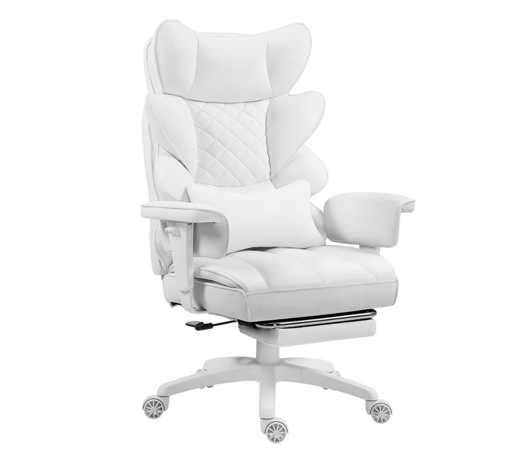 Big and Tall Office Chair with Pocket Spring Cushion,High Back Computer Gaming Chairs with Adjustable Armrests and Lumbar Support,Executive Desk Chairs with Footrest(PU Leather,White)