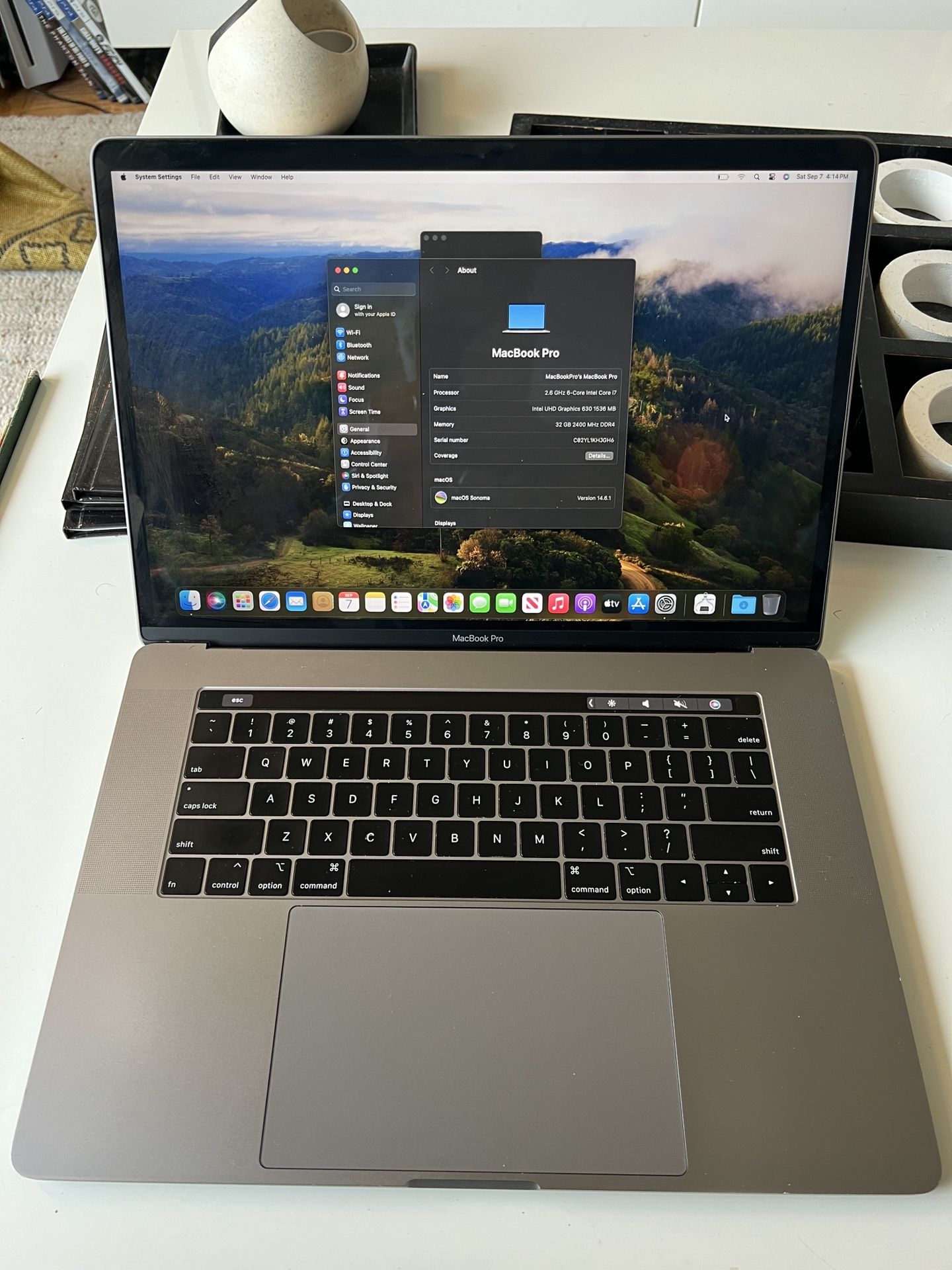 MBP 15” -i7 2.6GHZ -512GB SSD -32GB Ram -Radeon Pro 560x GPU I also have other windows and Apple laptops. Check other photos or my other listings. Let me know if you have any question