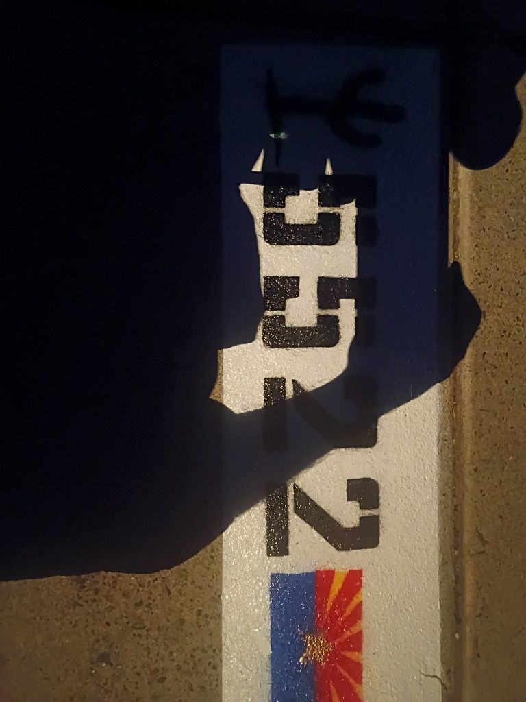 Curb numbers painted. $20/ regular black and white ,your choice. Now only add color...$20 AZ flag, state flag, hand cut one of a kind...$30. Cactus, flowers, cats, dogs, .......stencil. ..........$25 Or one of a kind color flare custom....$25-30.