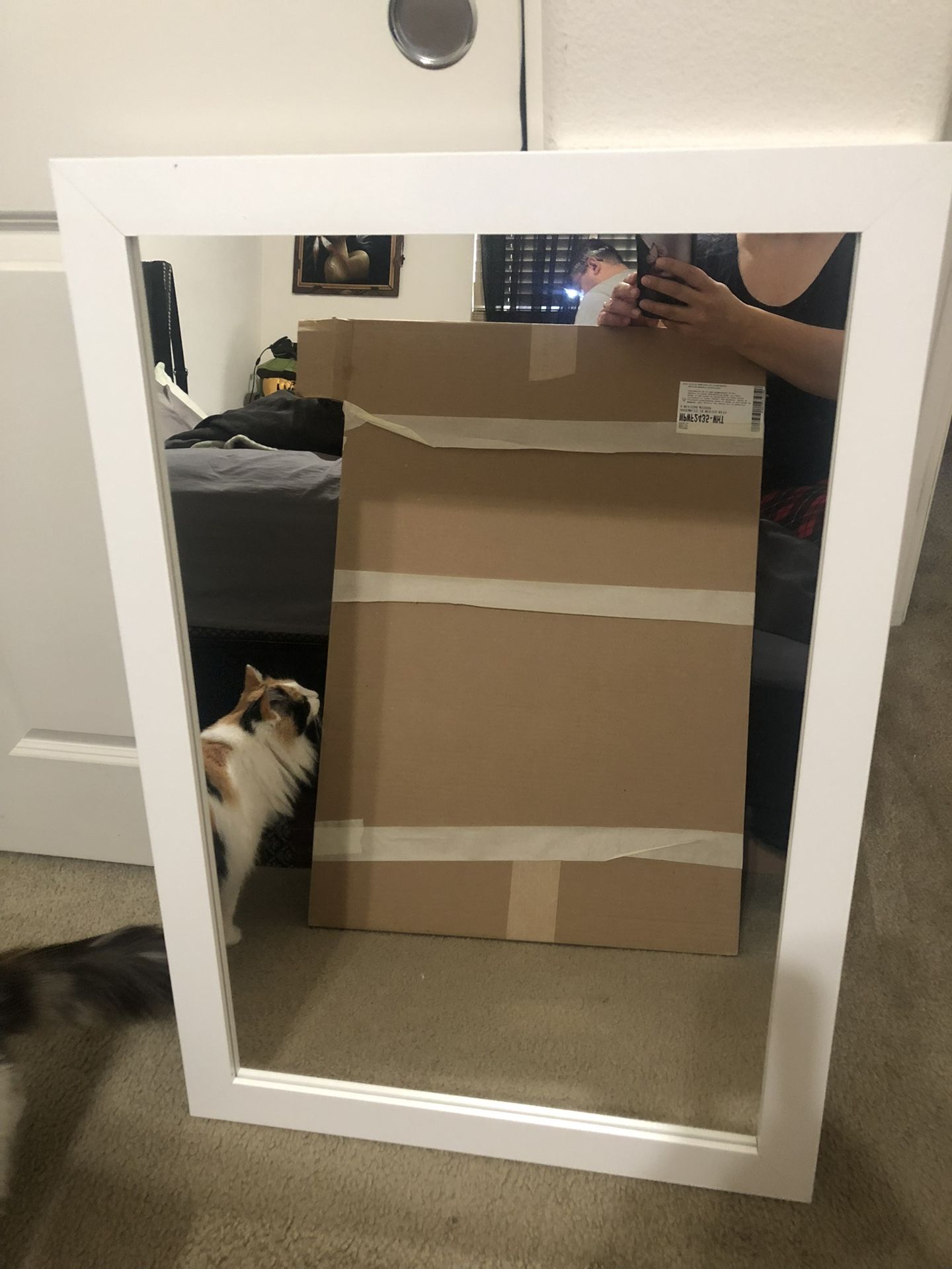 White Framed Mirror For Bathroom Vanity Or Other Room
