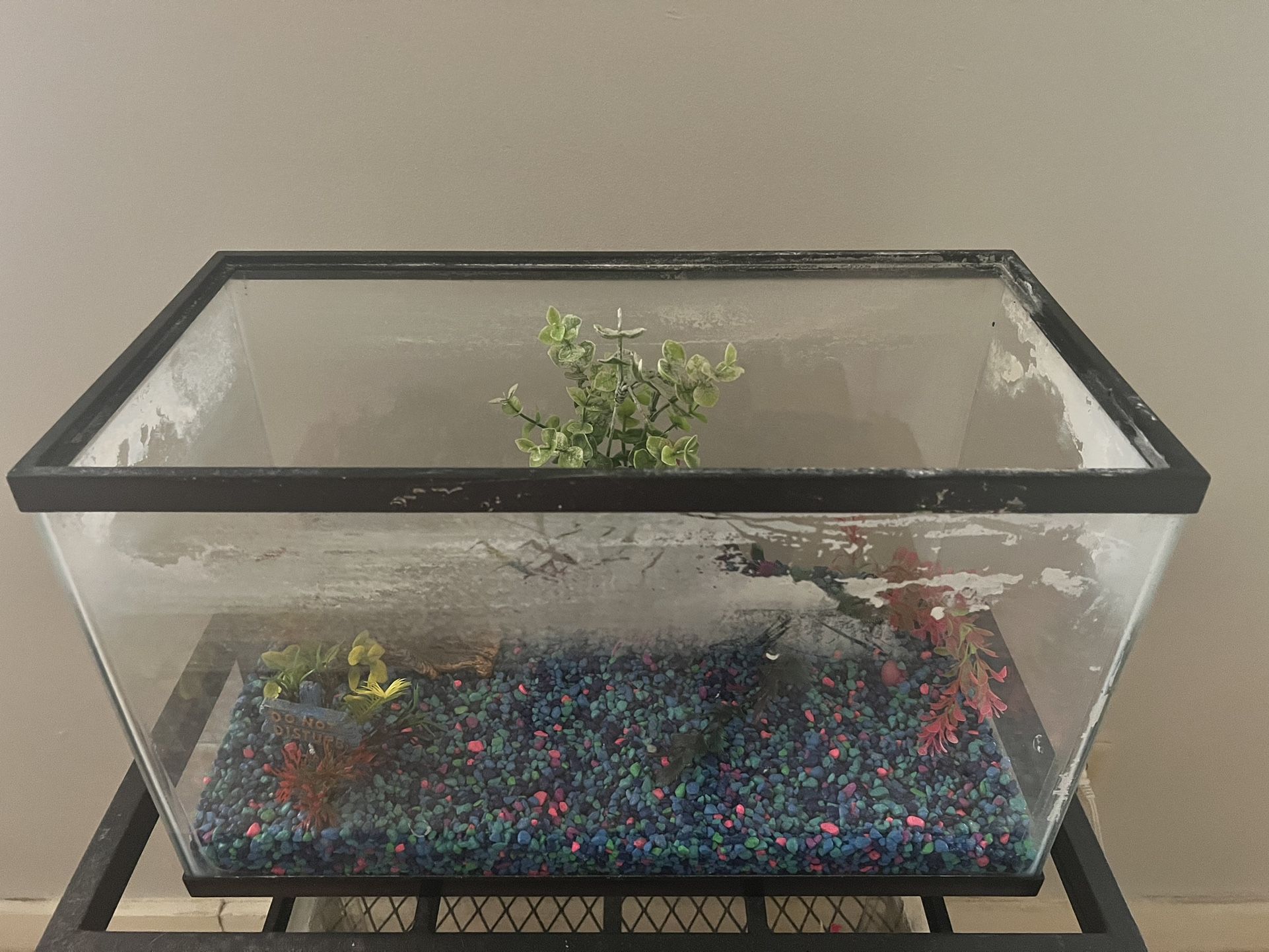 (2 ) 10 gallon aquariums with gravel and small tank accessories. Each used for about 2 months. One tank has a mesh lid. $50 tank without lid $60 tank with lid Submersible heaters, filters, and stand are also available.