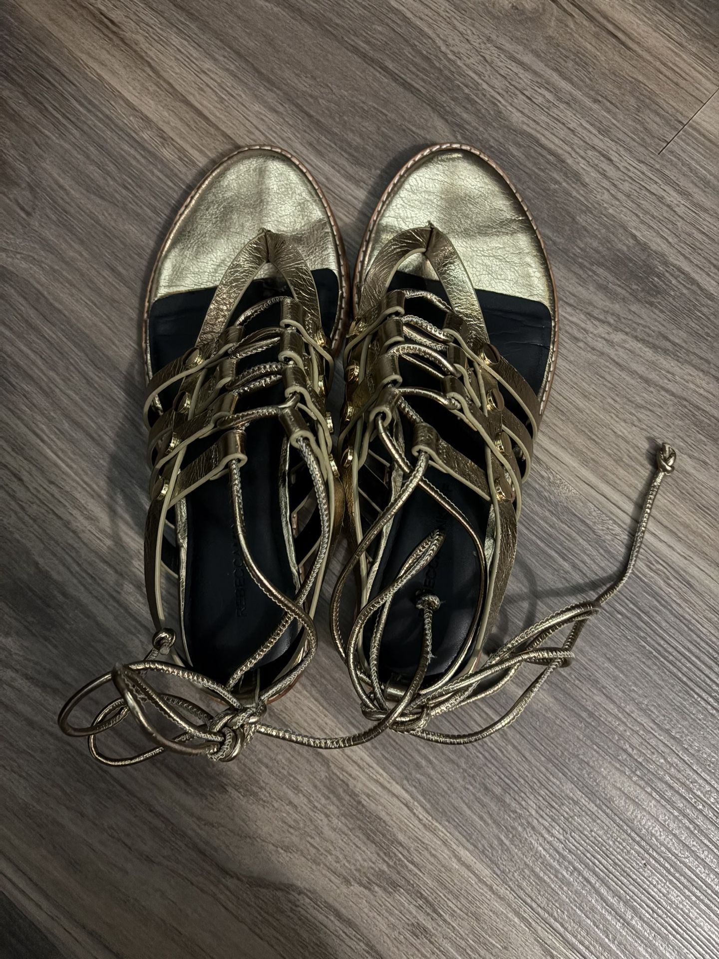 Beautiful strapped sandals in a bronze color. I’m really good condition.
