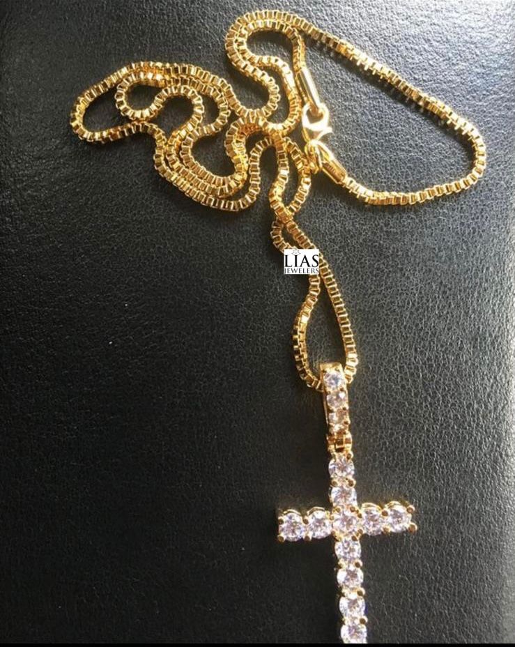 Brand new 18k yellow gold filled cuban link chain and cross Available in various sizes. Also have mens cuban chain, Cuban necklace, Cuban bracelet, iced out Cuban chain necklace and bracelet, women’s necklace jewelry