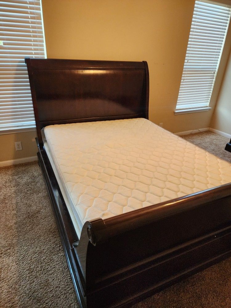 Queen Sleigh Bed, Dresser And Storage Ottoman