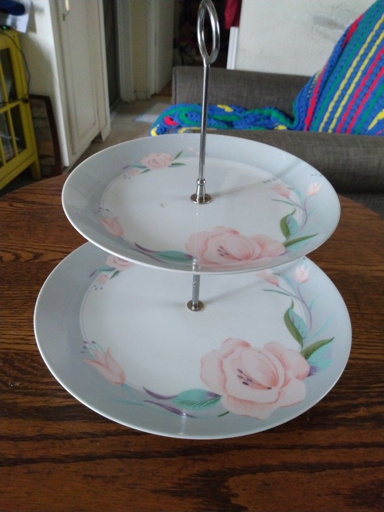 Beautiful 2 tier Table tray made by Victorian Rose China 1985