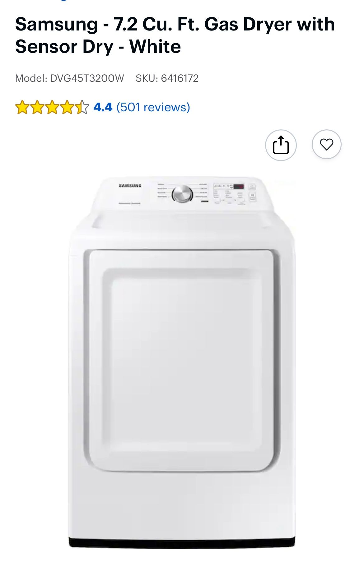 Never open/ still in the original box https://www.bestbuy.com/product/samsung-7-2-cu-ft-gas-dryer-with-sensor-dry-white/J3ZYGCH98Q