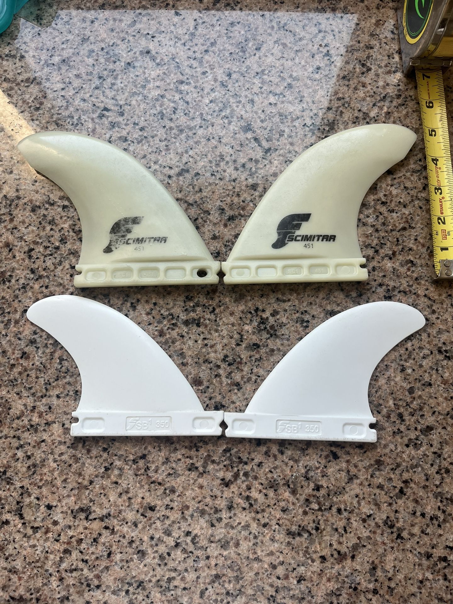 Future Brand Surfboard Fins Fins are clean no nicks or scratches Twin Quad 2+ 1 Setup 2 fins Scimitar model # 451 dog ear style 2 fins model #SB 350