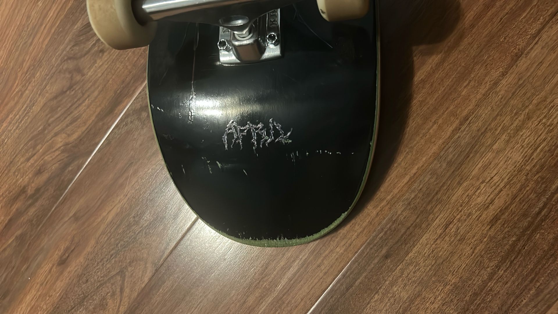 It has a few scratches but it’s in very good condition it rides smooth and has a great design in the back or the board.!!