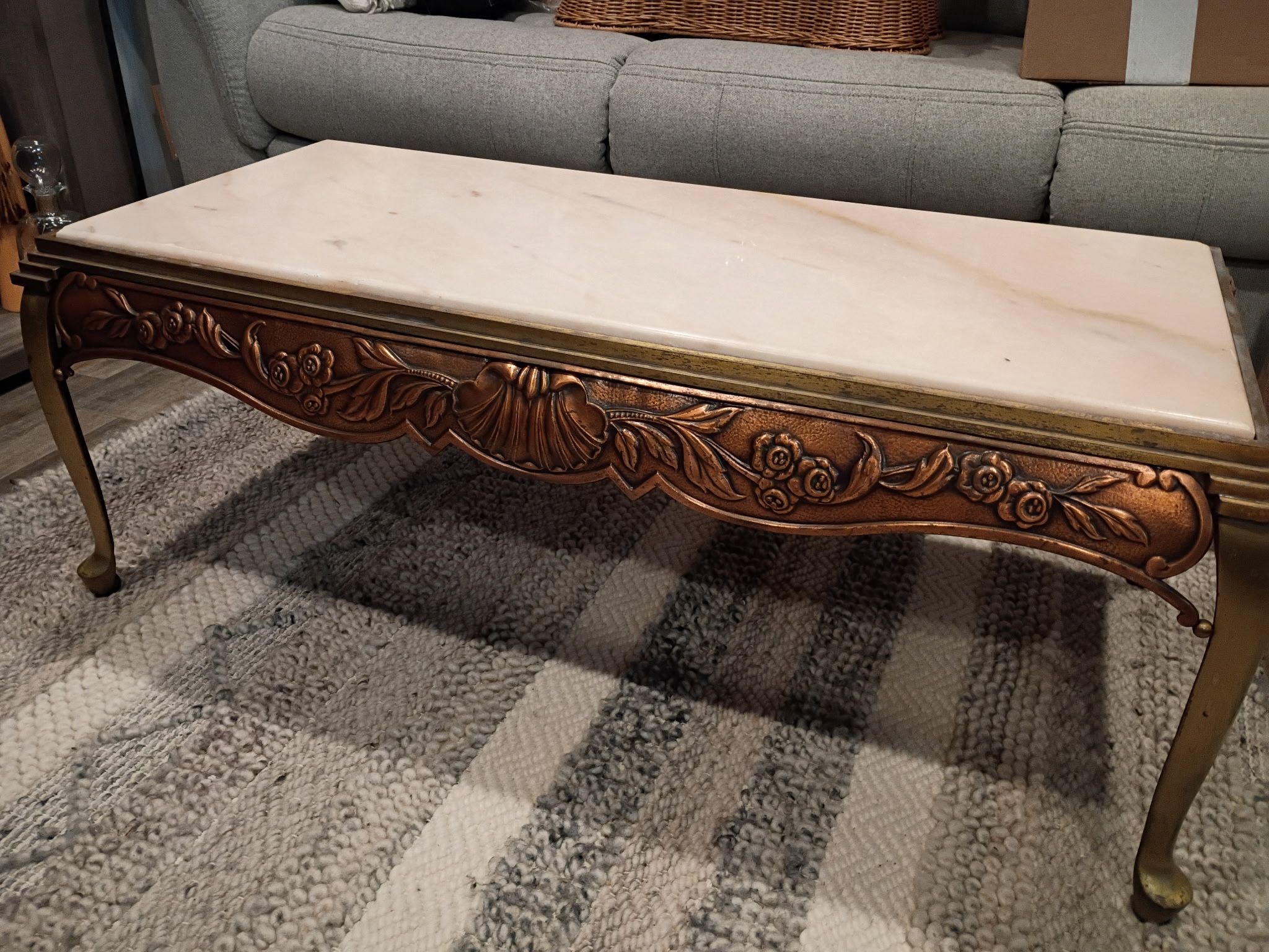 Vintage Antique Brass With Copper Detailed Skirt & Marble Top