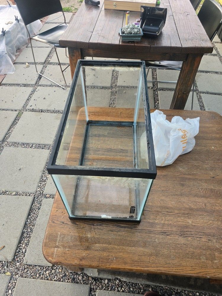 20 gallon wide, needs some cleaning, i have the accessories that go with it like filters heating and light, but the price is seperate. Pick up only