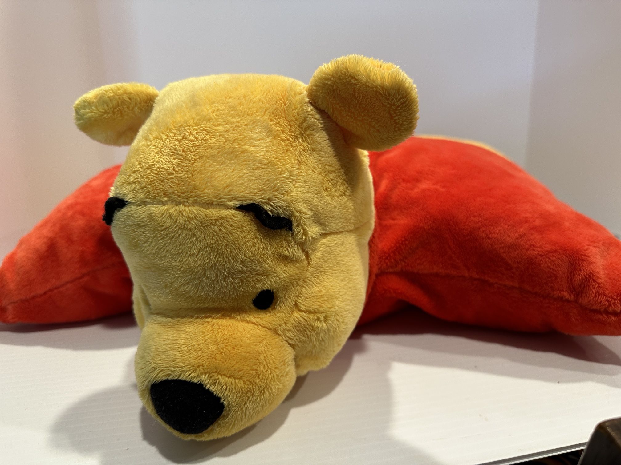 Bring home the magic of Disney Parks with this adorable Winnie the Pooh pillow pet plush bear. This lovable and huggable bear is perfect for any Disney fan and is sure to bring joy to children and adults alike. Made with high-quality materials, this medium-sized plush bear is durable and soft to the touch. Celebrate the timeless charm of Winnie the Pooh with this officially licensed Disney Parks merchandise. Perfect for snuggling up with at home or taking on your next adventure, this Winnie the Pooh pillow pet plush bear is a must-have for any Disney lover. In very good condition Pick up in Rancho Cucamonga Day creek and baseline No jolds Cash only
