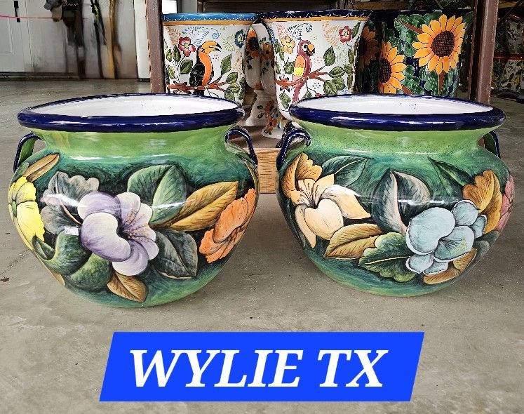 Authentic Mayolica Talavera Green Clay Pots (Planters) Plants. Pottery $65 cada una.