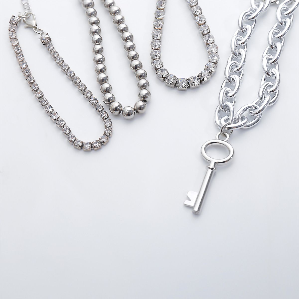 Multilayer Crystal Claw Chain Punk Style Cross Chain Bracelet, Silver Color