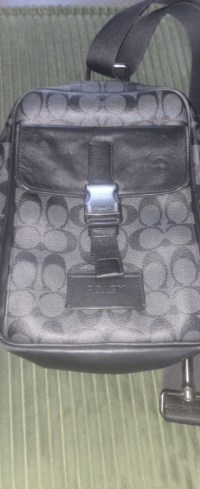 Used Men's Coach bag, black Monogram, Leather, Buckle, best offer