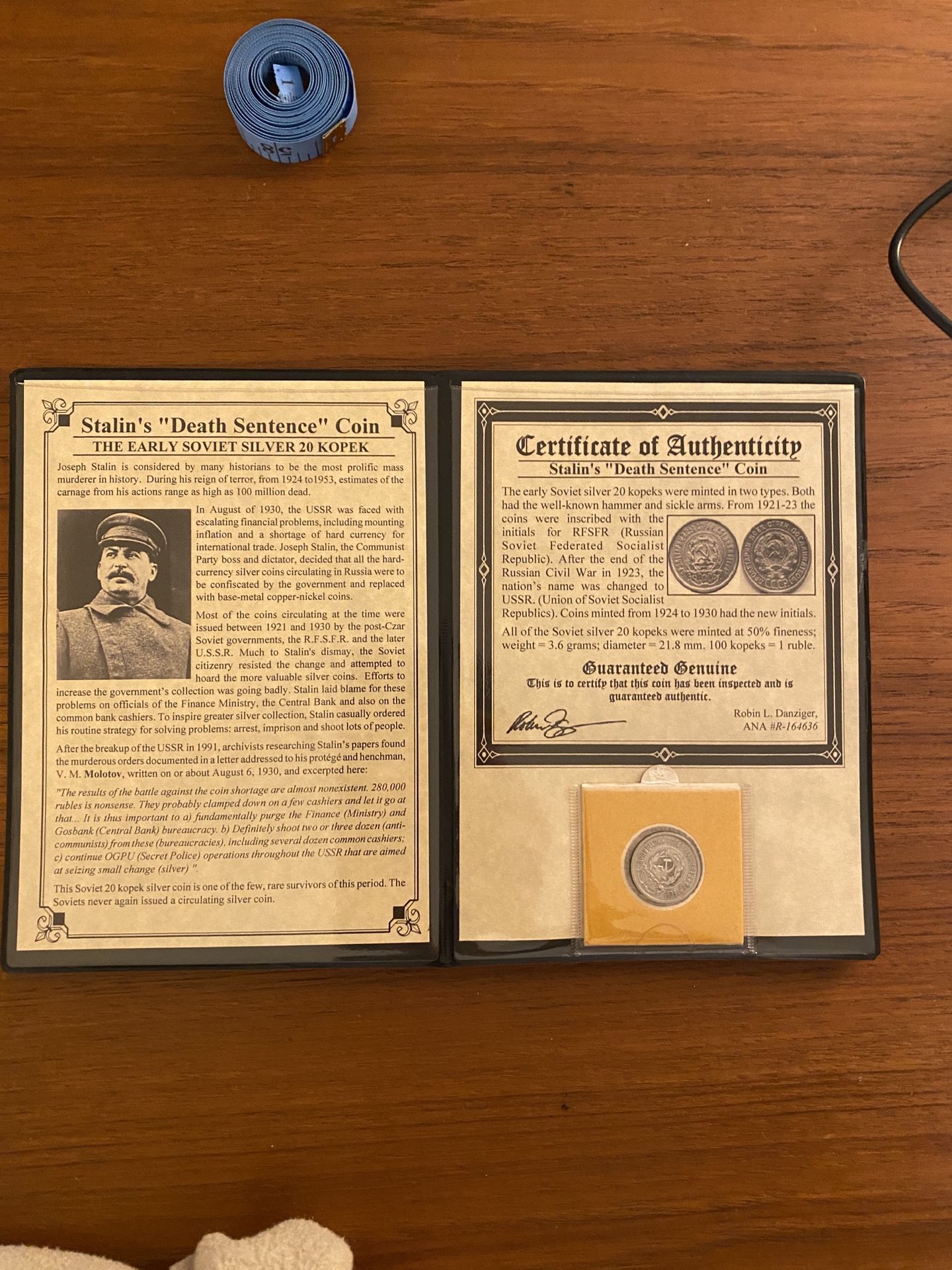 Stalin “Death Sentence” Soviet Silver 20 Kopek Coin w/ Display