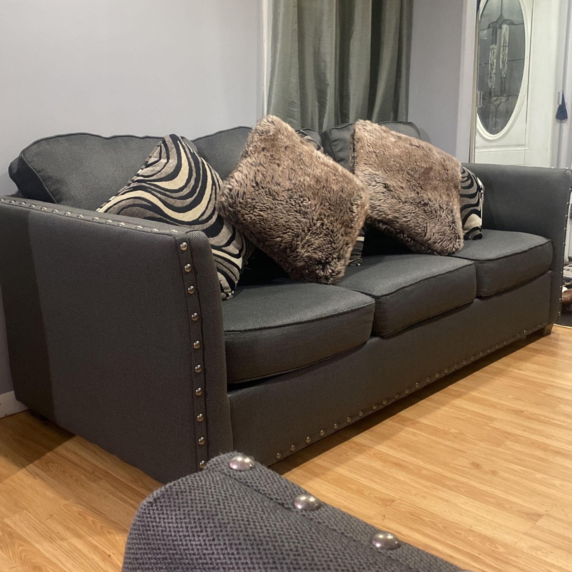 In like new conditions. All cushions are Removible for easy wash no stains no scratches no rips just clean cauch make your offer