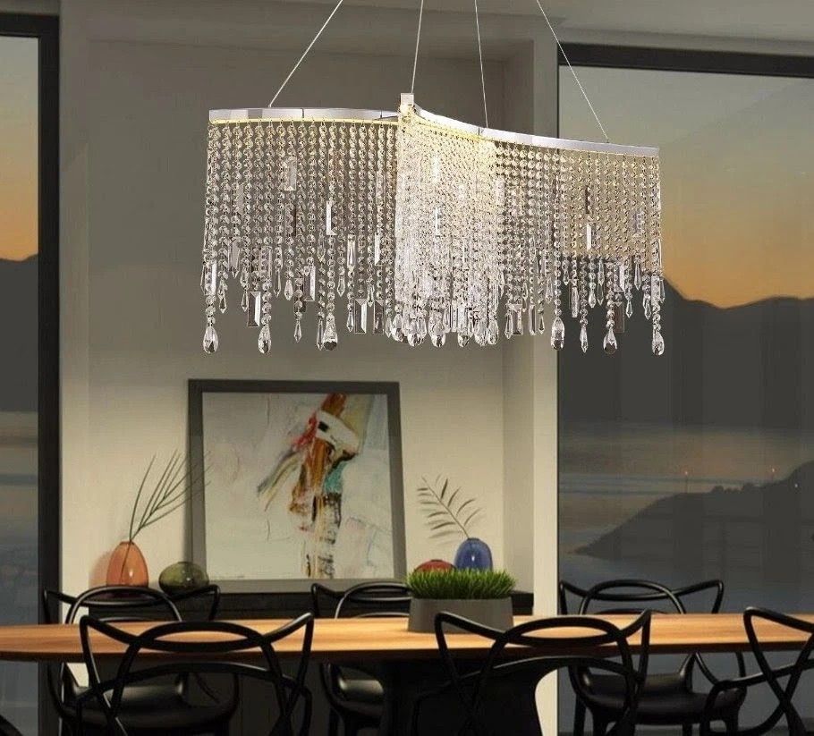 $200 each 3 available The Noxarte 12-Light Modern Tassel Crystal Chandelier features a sleek X-shaped polished chrome frame adorned with 12 premium K9 crystals. Designed for indoor use, it offers adjustable suspension (29"-59") to fit various ceiling types and supports dimmable LED G9 bulbs up to 7W each, totaling 36W. Ideal for dining rooms, kitchens, and offices, this 40" linear pendant fixture combines modern style with durable, rust-resistant materials and includes a easy installation kit. -Sleek & Sturdy: Polished chrome stainless steel frame resists rust and oxidation, ensuring lasting elegance -Tailored Ambiance: Dimmable LED lighting lets you set the perfect mood from bright productivity to cozy dinners -Dazzle w/Precision: 12 premium K9 crystals deliver a radiant, modern glow that elevates any space instantly -Custom Fit For Your Space: Adjustable suspension wire (29"-59") fits flat, sloped, or vaulted ceilings with ease -Effortless Installation Support: Comes with all mounting hardware and detailed instructions