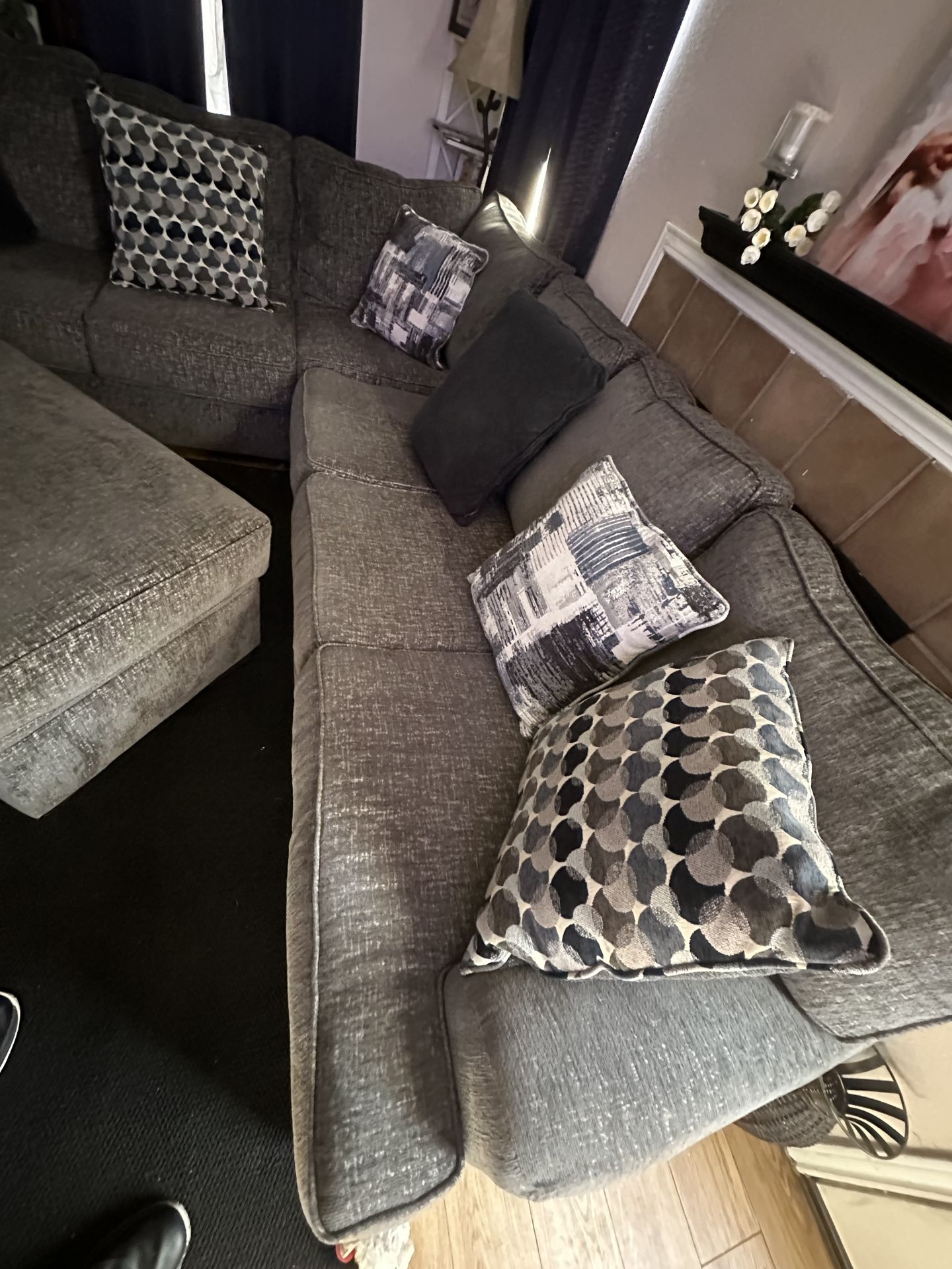 This couch is still in great condition ottoman as well I am selling it because we are looking for a smaller couch.