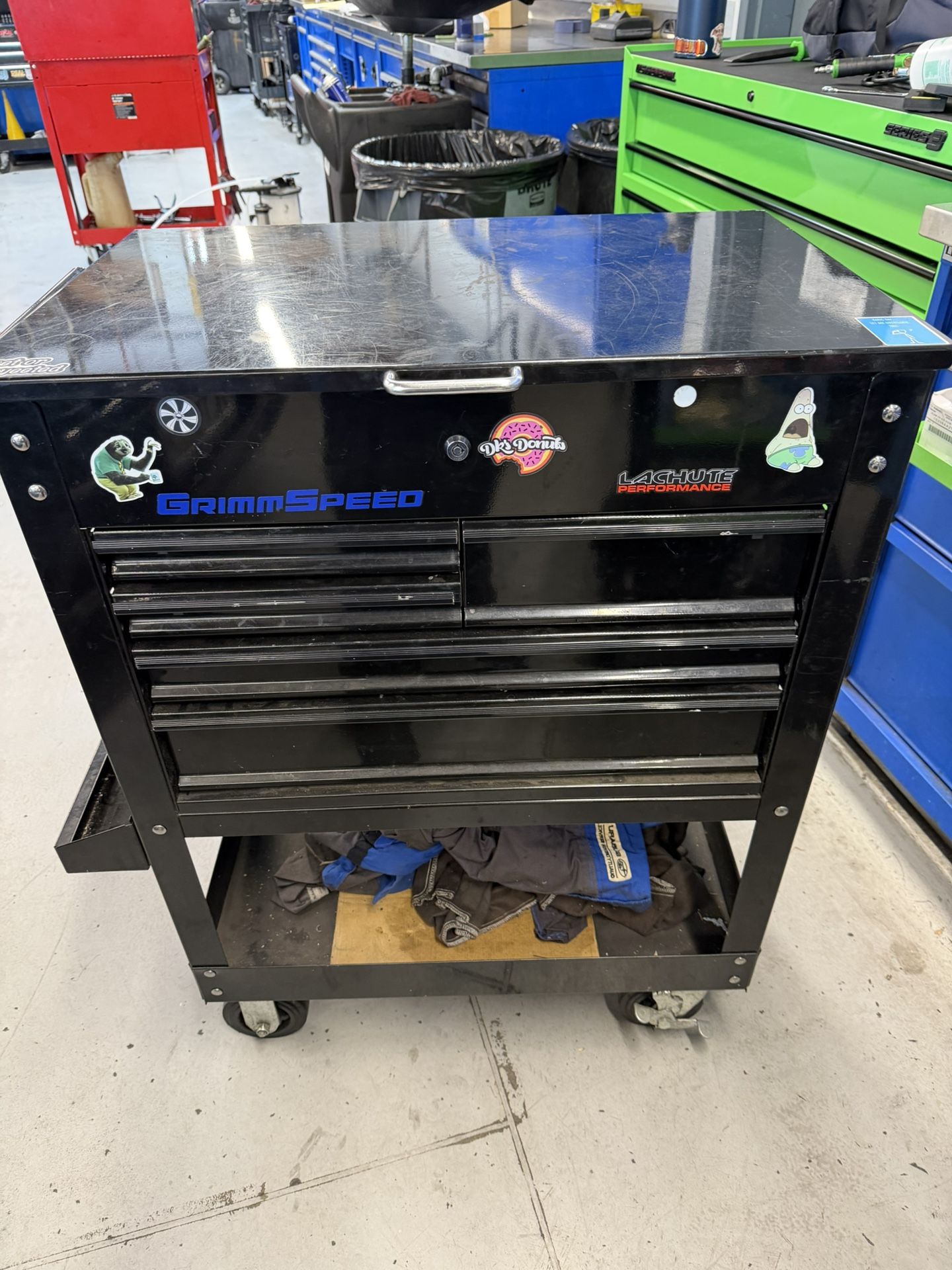 Tool box with a open lid 1 large drawer, 2 medium and 3 small drawers. Good condition comes with lock key.